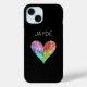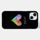Features a sparkly rainbow crystal heart on a black background. Can be personalized with a name.