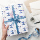 Brightly coloured wrapping paper that will bring joy to any party. Script typography is blue and says : Make a Wish.
