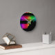This clock features a rainbow-colored image of people silhouetted against a sunset as they walk along a dock. The original photograph was taken along the shores of Lake Washington near Seattle, Washington, and it has rainbow effects applied to it. It tries to capture that moment when time seems suspended as the last rays illuminate the lake and people enjoy their last few moments outdoors. This clock is available in a selection of sizes and a square or circle shape.