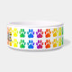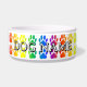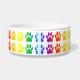 Dog pawprints in the colours of the rainbow. Custom dog name bowls. Edit name to customize. Gift idea.