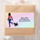 Silhouette Female walking a dog with a rainbow background. Colourful Business shipping address label for Pet Sitters and Dog Walkers. Customize with your business address.