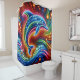Dive into the vibrant world of “Rainbow Dolphin: Ocean Glow,” a captivating addition to the Sea Mammal Majesty collection by H2OArt by AlexSandra. This shower curtain features a vibrantly coloured dolphin with rainbow hues, swimming through stylized waves and bubbles. The background includes glowing light orbs, adding a fantastical element to the scene. The dynamic composition and vivid colours create an energetic and whimsical effect, transforming your bathroom into a lively aquatic sanctuary.