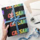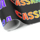This exciting, vibrant, fun wrapping paper design features the common first name "CASSANDRA" having a colourful rainbow spectrum gradient inspired colouring pattern. The background is coloured black. Colourful wrapping paper like this might be a fun way to wrap a present being given to somebody named Cassandra. [~Z0000354]