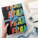 This vibrant, multicolored, exciting wrapping paper design features the common first name "FRANK" having a colourful rainbow spectrum like colouring pattern. The background is coloured black. Vibrant wrapping paper like this might be fun to use when giving a gift to somebody named Frank. [~Z0000354]