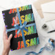 This multicolored, exciting, fun wrapping paper design features the common first name "JASMINE" having a colourful rainbow spectrum inspired colouring pattern. The background is coloured black. Exciting wrapping paper like this might be fun to use when giving a gift to somebody named Jasmine. [~Z0000354]