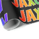 This multicolored, fun, vibrant wrapping paper design features the common first name "JAXON" having a colourful rainbow spectrum like colouring pattern. It also features a black coloured background. Vibrant wrapping paper like this might be a fun way to wrap a gift or present being given to somebody named Jaxon. [~Z0000354]
