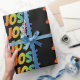 This exciting, fun, vibrant wrapping paper design features the common first name "JOSE" having a colourful rainbow spectrum like colouring pattern. The background is coloured black. Colourful wrapping paper like this might be a fun way to wrap a gift or present being given to somebody named Jose. [~Z0000354]