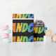 This exciting, fun, multicolored wrapping paper design features the common first name "LANDON" having a colourful rainbow spectrum like colouring pattern. The background is coloured black. Vibrant wrapping paper like this might be fun to use when giving a present or gift to somebody named Landon. [~Z0000354]
