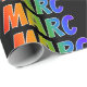 This exciting, vibrant, multicolored wrapping paper design features the common first name "MARC" having a colourful rainbow spectrum like colouring pattern. The background is coloured black. Colourful wrapping paper like this might be fun to use when giving a present to somebody named Marc. [~Z0000354]