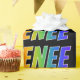 This multicolored, fun, exciting wrapping paper design features the common first name "RENEE" having a colourful rainbow spectrum gradient inspired colouring pattern. The background is coloured black. Vibrant wrapping paper like this might be a fun way to wrap a present or gift being given to somebody named Renee. [~Z0000354]