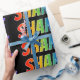 This vibrant, exciting, fun wrapping paper design features the common first name "SHANE" having a colourful rainbow spectrum gradient inspired colouring pattern. The background is coloured black. Vibrant wrapping paper like this might be fun to use when giving a present or gift to somebody named Shane. [~Z0000354]
