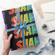 This fun, vibrant, exciting wrapping paper design features the common first name "SHAWN" having a colourful rainbow spectrum inspired colouring pattern. The background is coloured black. Colourful wrapping paper like this might be a fun way to wrap a gift being given to somebody named Shawn. [~Z0000354]