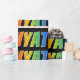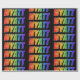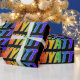 This vibrant, fun, multicolored wrapping paper design features the common first name "WYATT" having a colourful rainbow spectrum gradient inspired colouring pattern. The background is coloured black. Exciting wrapping paper like this might be a fun way to wrap a present being given to somebody named Wyatt. [~Z0000354]