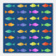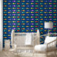 Rainbow fish in ocean cute colourful patterned kids wallpaper for cheerful childhood. A delightful design that bursts with vibrant colours and features an enchanting pattern of cute, happy rainbow fish swimming in sea. These cute fish showcase an assortment of vivid colours from red to orange, yellow, green, blue, indigo, and violet, mirroring the brilliance of the rainbow. Their round eyes exude a sense of joy, and their whimsical smiles add an infectious charm to the design. This adorable design radiates happiness and positivity, capturing the essence of a cheerful underwater world. Make your child's days filled with happiness and cheer spread by colourful happy fish.