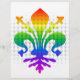 A rainbow fleur-de-lis with a fleur-de-lis background pattern.