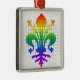 A rainbow fleur-de-lis with a fleur-de-lis background pattern.