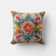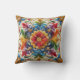 Rainbow Flower Embroidery Looking Floral Design Throw Pillow