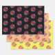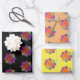 Gift wrap trio features rainbow coloured flower mandala illustration on three different coloured backgrounds