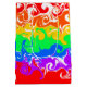 Red, purple, orange, yellow, blue and green rainbow fluid art birthday gift bag.