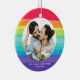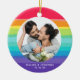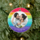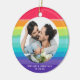 Show off your love with this beautiful commemorative gay wedding Christmas ornament. A colourful rainbow surrounds the happy LGBTQ couple. Add the newlywed names and anniversary date on the pretty purple colour.