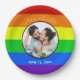 Rainbow Gay Pride Custom Couple Photo Bold Wedding Paper Plate