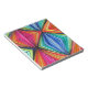 Colourful, bright graphic art illustration with hand designed geometric pattern art in diamond psychedelic bright, vivid rainbow colour scheme. This design was hand drawn and hand coloured by visual artist Sacha Grossel and was inspired by pop art and op art movements of the 1960s.