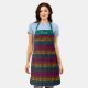 Colourful rainbow gingham pattern custom name apron. Personalize the script font with name or message. Makes a great gift for anyone! Perfect for cooking at home, hosting bbq, cooking or wine classes, arts and crafts, holiday parties, tending bar, and special events.