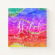 A pretty rainbow abstract background with faux digital glitter effects and an elegant typography in white and space to add your own name.