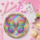 Make your celebration shine with these beautiful rainbow glitter butterfly party plates. Featuring a vibrant iridescent butterfly with sparkling glitter wings and an elegant gold jeweled frame, this design brings color and magic to your party table. Perfect for birthdays, butterfly-themed parties, baby showers, garden parties, and colorful celebrations. A stylish and eye-catching table decoration your guests will love.