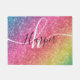 Add a splash of color to your door mat featuring glitter rainbow with monogram and script name. Personalize with your name, monogram, initial or text. You can change text color and font style using the customize it further option. Please note, glitter is as printed effect and not physical glitter pieces. Please contact me for any questions!