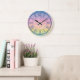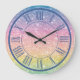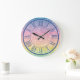 Add a touch of sparkle and magic to your space with this beautiful rainbow glitter wall clock. The vibrant ombre glitter design transitions from pink to blue, creating a mesmerizing effect. Roman numerals in a dark blue hue add a touch of sophistication. This eye-catching clock is perfect for any room that needs a little extra sparkle.