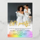 LGBT sequel wedding invitation for a wedding party after a small social distance ceremony. Pride sequel wedding invitation personalized with your wedding photos, one on other side of the invitation. Let's party in a gold foil brush script across the bottom of your photo.