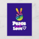 Rainbow Hand Peace Sign Peace and Love Typography Postcard