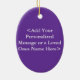 I was disappointed with the writing on the ornament. It’s just too small and can barely be seen. Also it was not as obvious on screen that the position of the hole for hanging was centered on person’s forehead. Writing that came with chosen frame is too small and can barely be seen.