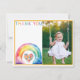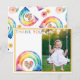 Send a heartfelt thank you with this vibrant watercolor rainbow card, featuring a floral heart nestled in dreamy clouds and space for a personalized photo. The bold rainbow "Thank You" text and cheerful pastel design make it perfect for birthdays, baby showers, or any sweet celebration. Customize with your child’s picture and message to create a keepsake loved ones will treasure.