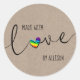 For your homemade, handmade gifts, our "Made With Love" stickers (and also made with PRIDE!) are the perfect finishing touch! This cute design features "love" in script lettering with an offset RAINBOW heart for a pop of colour and matching hand lettered typography and is set on a faux Kraft™ background. The modern, stylish design will set your artisan work apart from the others, whether you make soap, jellies and jams, and other handmade presents! #Crafts #HandCrafted #SmallBusiness #Handmade