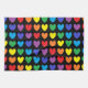 Abstract digital rows of rainbow coloured hearts against a black background. Colours including red, orange, yellow, green, blues, purple.