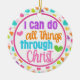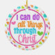 Add a special touch to your holiday tree or mantle with this Christian scripture ceramic ornament. Features the saying "I can do all things through Christ", Philippians 4:13, and accented with colourful rainbow hearts. An excellent religious gift for adults and children.