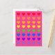 Colourful heart rainbow motif on deep pink magenta background. Primary and secondary colours of a colour wheel. Playful pattern.
