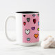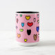 Rainbow Heart Coffee Mug, this is the fisrt design, if you are wanting a diffrent back ground to fushia then please get in touch and we can look at costomising this design more to what you are looking for,