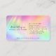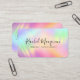 This is the perfect business card for a trendy, stylish, girly, and modern lash artist, makeup artist, nail technician, and many more professions. This design features a rainbow unicorn colour schemed holographic iridescent background with elegant handwritten script typography. It's modern, elegant, girly, unique, trendy, stylish, and cool; the perfect design to impress your customers.
