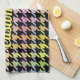 Rainbow houndstooth. Seamless pattern. Custom background colour. Custom text.