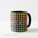 Rainbow houndstooth. Seamless pattern. Custom background colour. Custom text.