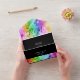 .: Gorgeous clean look in black with white detail. Beautiful alcohol-ink look rainbow detail at edges. Many options are available for your high-class wedding.