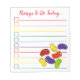 List-style to do list checklist note pad design features an original marker illustration of rainbow jelly bean candies. Just personalize with your information.