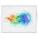 Large, iridescent, artistically drawn, bright jellyfish, with long tentacles on white, painted over with multicolored watercolor background. Rainbow jellyfish.