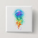 Large, iridescent, artistically drawn, bright jellyfish, with long tentacles on white, painted over with multicolored watercolor background. Rainbow jellyfish.