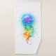 Large, iridescent, artistically drawn, bright jellyfish, with long tentacles on white, painted over with multicolored watercolor background. Rainbow jellyfish.