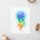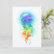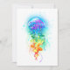 Large, iridescent, artistically drawn, bright jellyfish, with long tentacles on white, painted over with multicolored watercolor background. Rainbow jellyfish.