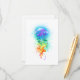 Large, iridescent, artistically drawn, bright jellyfish, with long tentacles on white, painted over with multicolored watercolor background. Rainbow jellyfish.